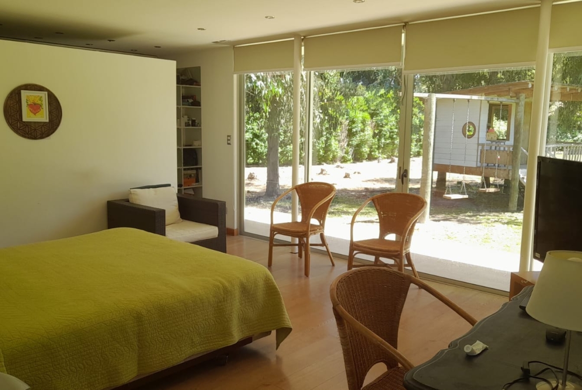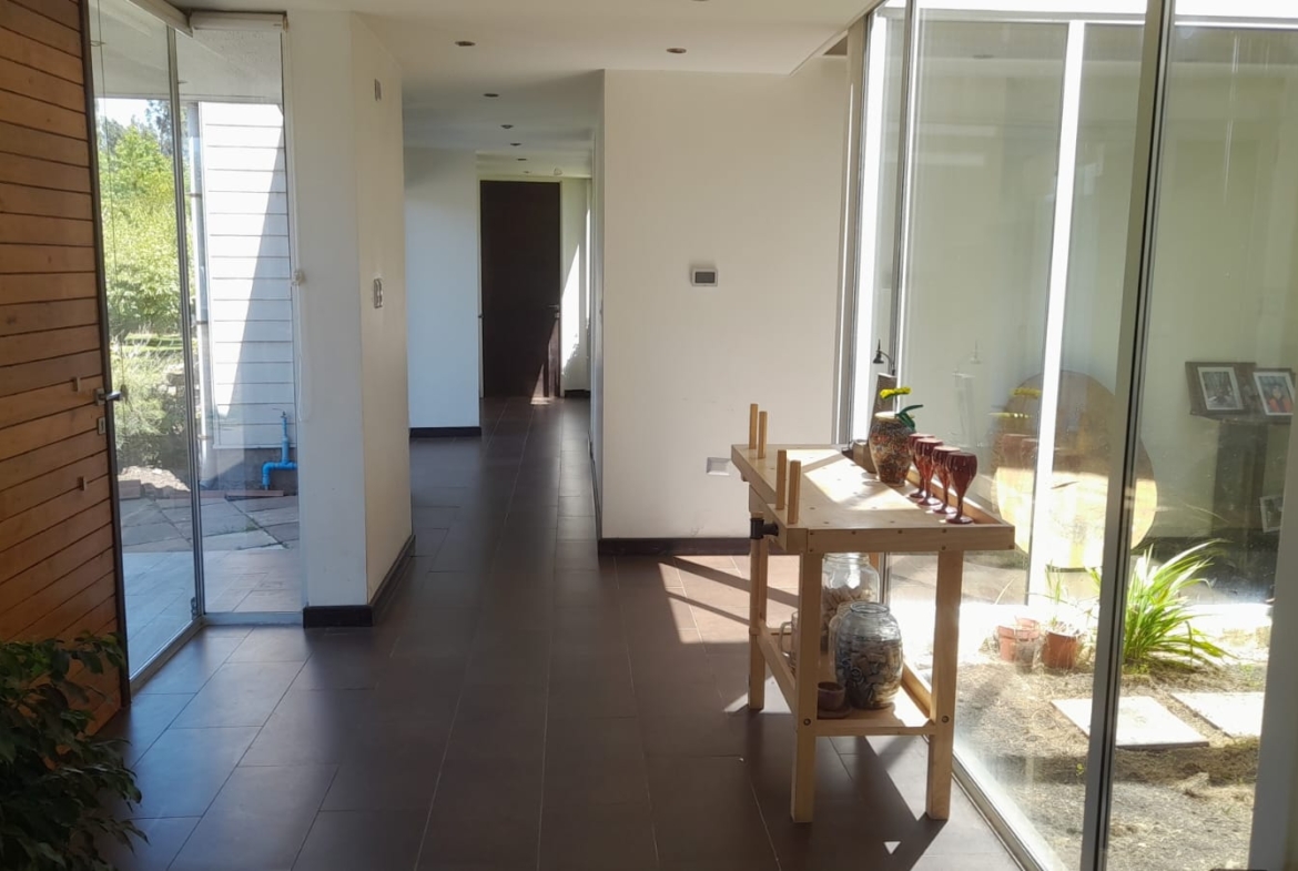 Guardia 24/7.Calefacción con losa radiante.Amplios espacios comunes al interior.Sector Home office.Pieza de invitados o dormitorio de servicio con baño.Cerco vivo.Árboles frutales, cerca de colegios, cercano de la salida a la autopista.
