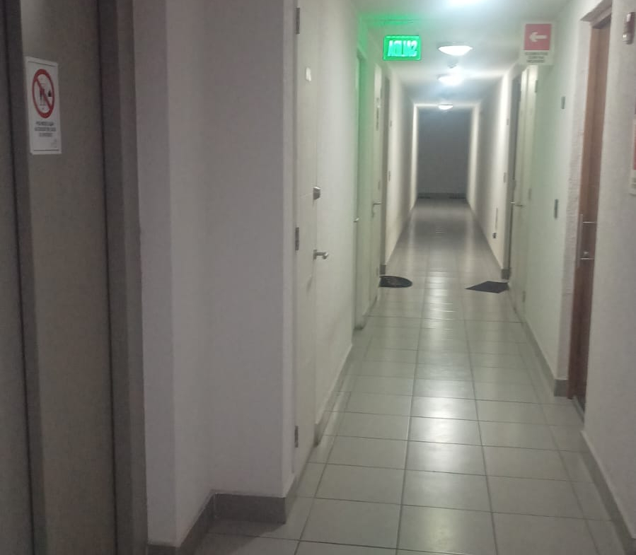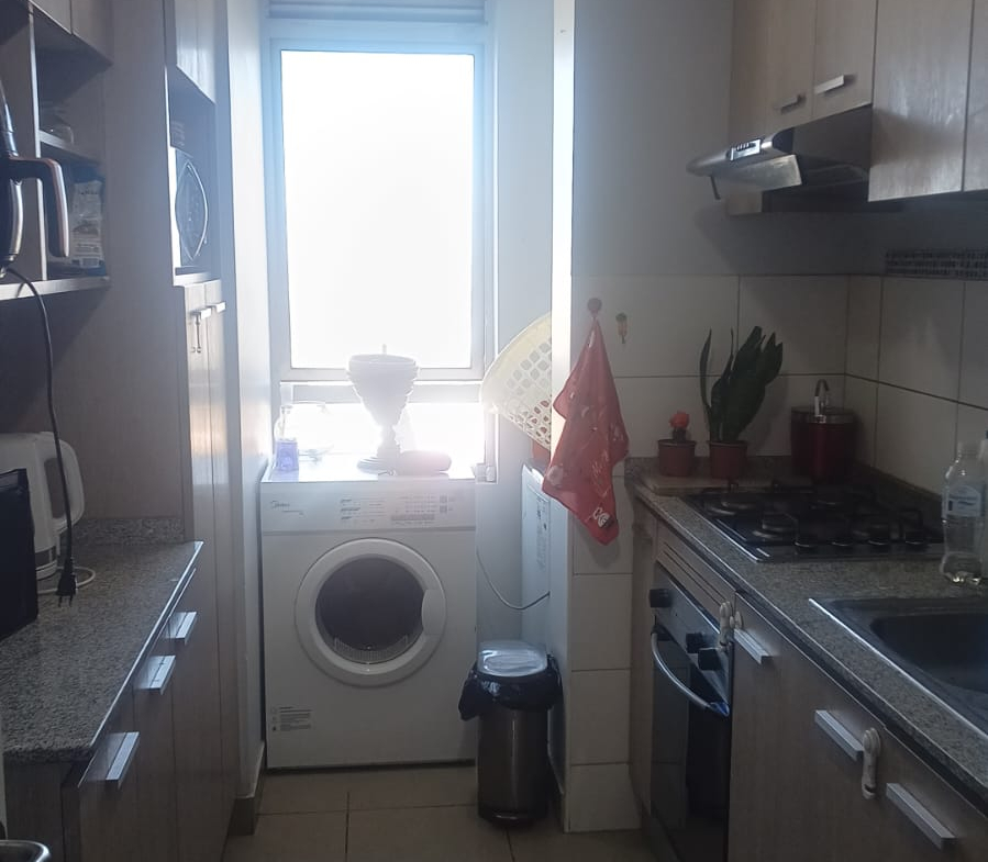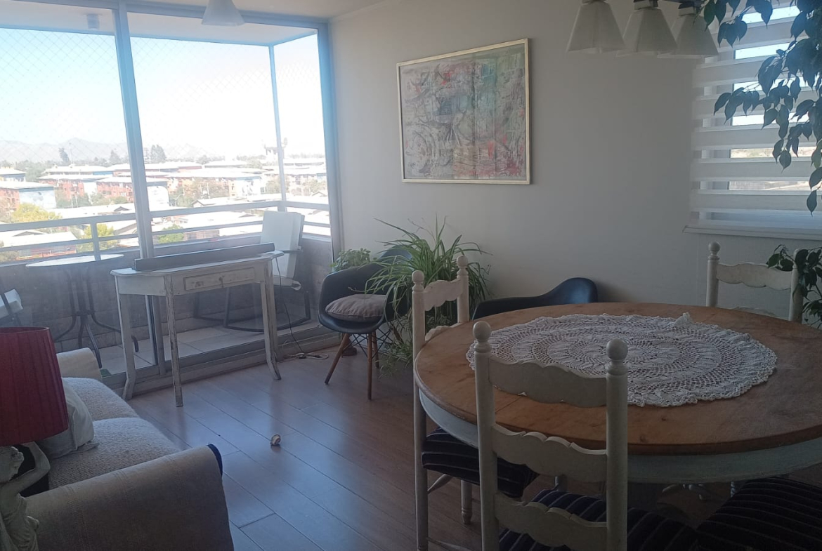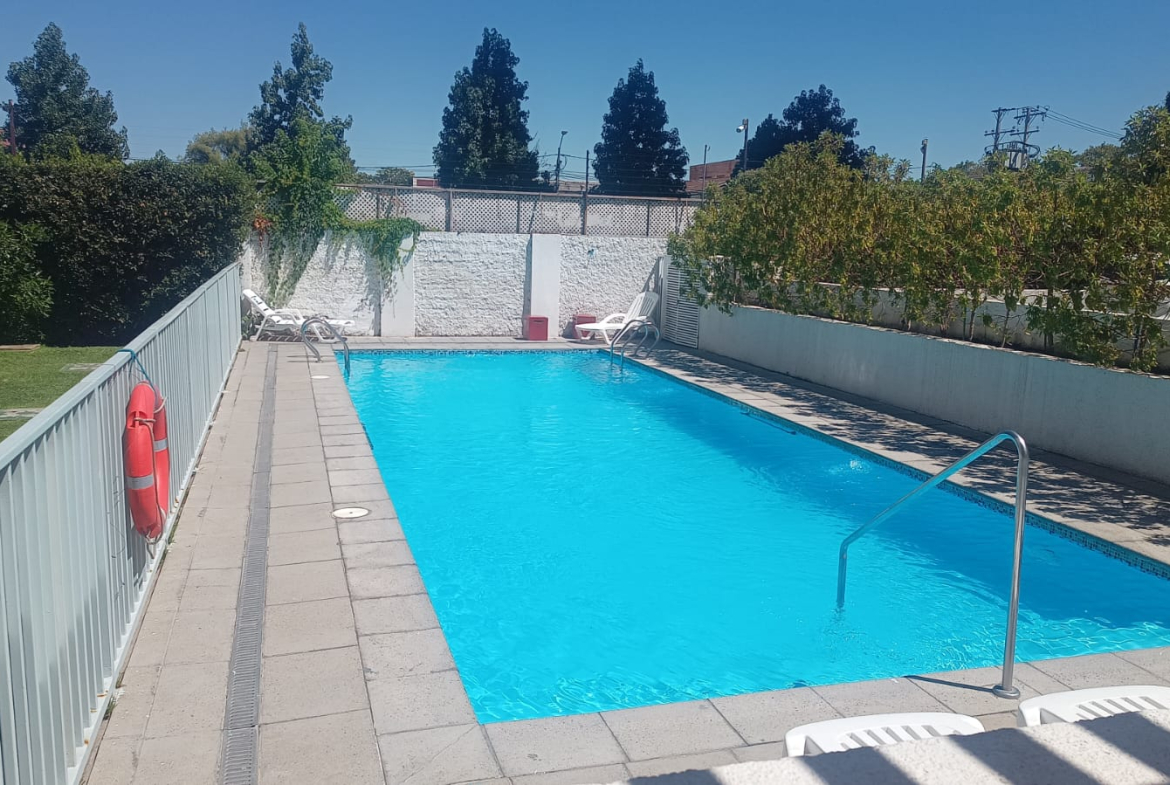 Piso flotante, cocina amoblada, terraza, piscina, quincho, sala de evento, gym, gasto común $120.000 aproximadamente.
