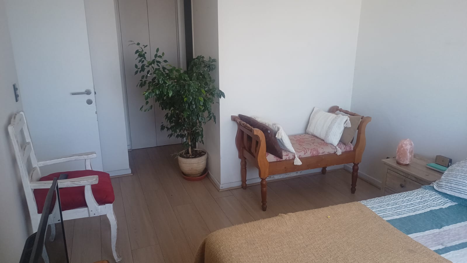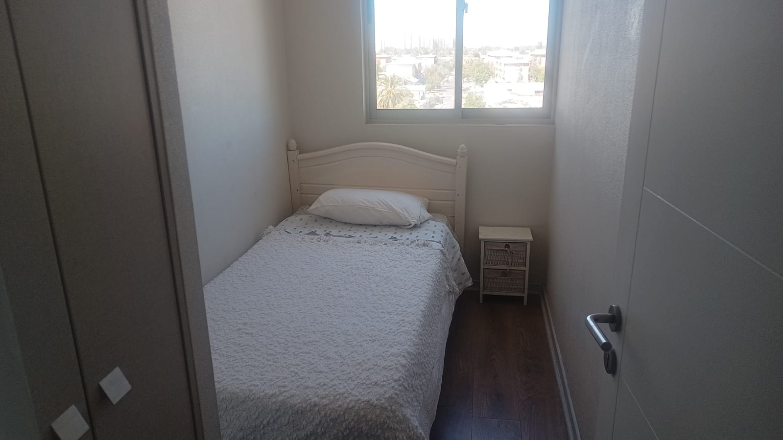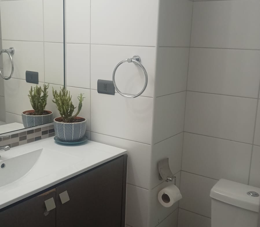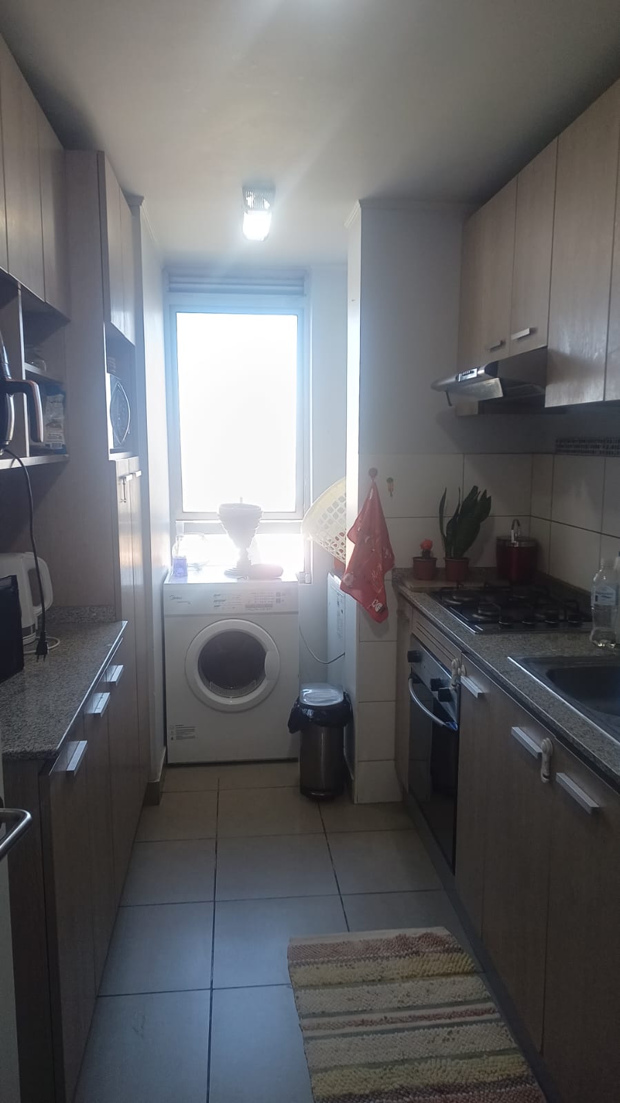 Piso flotante, cocina amoblada, terraza, piscina, quincho, sala de evento, gym, gasto común $120.000 aproximadamente.